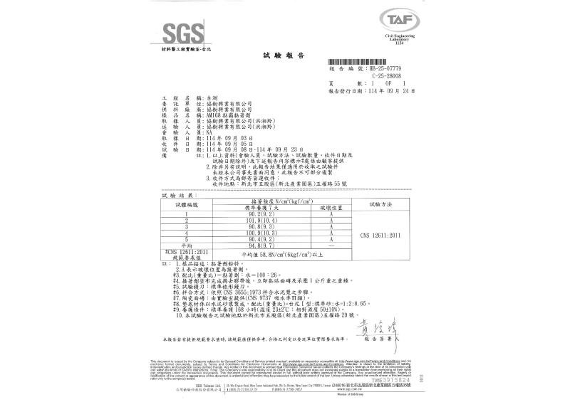 SGS檢驗抗拉接著強度(7天平均11kgf/c㎡)