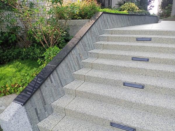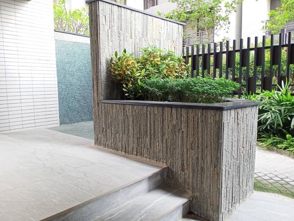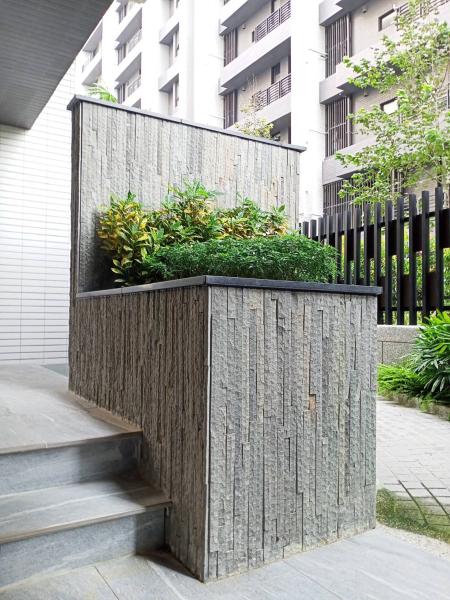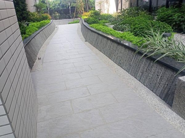 ,作為社區造景之貼面,用於社區門面、步道旁與園藝造景等,以此石材連接全區作使用,使視覺上看起來整體感加分,且給人一種延伸感!